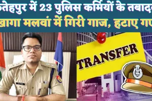 उत्तर प्रदेश (Uttar Pradesh) के फतेहपुर (Fatehpur) में अखरी गांव तिहरे हत्याकांड के बाद पुलिस महकमे में बड़ा बदलाव किया गया. ललौली, थरियांव और सुल्तानपुर घोष के थानाध्यक्षों को लाइन हाजिर कर दिया गया. एसपी ने जनहित में 18 पुलिस अधिकारियों का तबादला कर सर्जरी को अंजाम दिया. Fatehpur News: अखरी हत्याकांड के बाद पुलिस महकमे में गिरी गाज, दो अफसर सस्पेंड, लेकिन पूर्व एसओ पर चुप्पी क्यों?