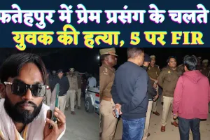 उत्तर प्रदेश (Uttar Pradesh) के फतेहपुर (Fatehpur) में प्रेम प्रसंग (Love Affair) के चलते एक युवक की हत्या (Murder) कर दी गई है. घटना खखरेरु थाना (Khakhreru Thana) क्षेत्र के भीमपुर गांव की है. पुलिस ने पांच लोगों के खिलाफ मुकदमा दर्ज किया है. Fatehpur News: फतेहपुर में अंबेडकर प्रतिमा स्थापित करने को लेकर विवाद ! 21 लोगों पर पुलिस ने की कार्रवाई